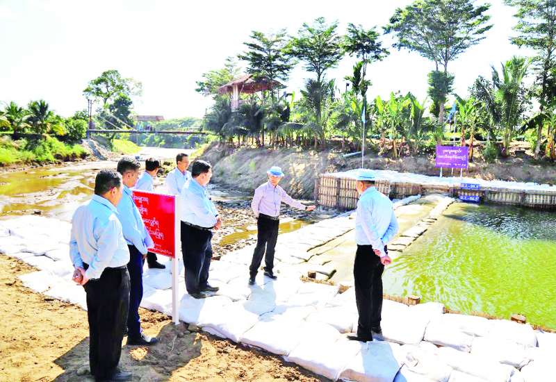 စိုက်ပျိုးရေး၊ မွေးမြူရေးနှင့်ဆည်မြောင်းဝန်ကြီးဌာန ပြည်ထောင်စုဝန်ကြီး ဦးမင်းနောင်သည် ဒုတိယဝန်ကြီး ဦးဗိုလ်ဗိုလ်ကျော်၊ တာဝန်ရှိသူများနှင့်အတူ ယနေ့နံနက်ပိုင်းတွင် ဇေယျာသီရိမြို့နယ် ကျောက်ချက်ကျေးရွာအနီး ကျောက်ချက်တံတား အောက်ဆင်သေချောင်းအတွင်း တစ်နှစ်ပတ်လုံး ရေထိန်းထားရန်နှင့် ပတ်ဝန်းကျင်စိမ်းလန်းစိုပြည် သန့်ရှင်းသာယာလှပစေရေး စီမံဆောင်ရွက်ရန်အတွက် ပြည်ထောင်စုဘဏ္ဍာရန်ပုံငွေဖြင့် ယာယီရေထိန်းတမံတည်ဆောက်နေမှုကို သွားရောက်ကြည့်ရှုစစ်ဆေးသည်။