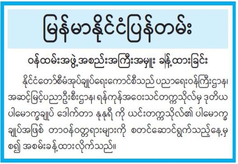 ၂၀၂၃ ခုနှစ် ဒီဇင်ဘာ ၃ ရက်တွင် ကျရောက်မည့် အပြည်ပြည်ဆိုင်ရာ မသန်စွမ်းသူများနေ့ အထိမ်းအမှတ်အခမ်းအနားအား ဂုဏ်ပြုကြိုဆိုသောအားဖြင့် ၂၀၂၃ ခုနှစ် ဆောင်ပုဒ်ဖြစ်သည့် “စဉ်ဆက်မပြတ်ဖွံ့ဖြိုးဖို့ မသန်စွမ်းသူများနှင့်အတူ ကူညီဆောင်ရွက်စို့” ခေါင်းစဉ်ဖြင့် ဆောင်းပါးပြိုင်ပွဲကို ပြုလုပ်သွားမည်ဖြစ်ပါသည်။ ဆောင်းပါးပါဝင်ယှဉ်ပြိုင်လိုသူများသည် မိမိတို့ကိုယ်တိုင်ရေးသားထားသည့် ဆောင်းပါးကို ပြန်လည်ထူထောင်ရေးဦးစီးဌာန၊ ထိခိုက်လွယ်အုပ်စုများဌာနခွဲ တယ်လီဖုန်းအမှတ် - ၀၆၇-၃၄၀၄၆၀၃၊ ၀၆၇-၃၄၀၄၆၀၄ နှင့် E-mail-vulnerable group.dor@gmail.com တို့ထံ ဆက်သွယ်၍ (၂၄-၁၁-၂၀၂၃)ရက်၊ သောကြာနေ့၊ ညနေ (၁၆:၀၀) နာရီအထိ နောက်ဆုံးထား၍ ဆက်သွယ်ပေးပို့နိုင်ကြောင်း သတင်းရရှိသည်။