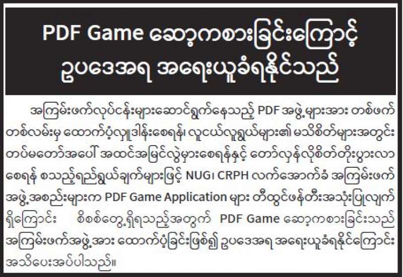 အကြမ်းဖက်အုပ်စုအဖြစ် ကြေညာထားသော CRPH၊ NUG နှင့် ယင်းတို့၏ လက်ဝေခံအဖွဲ့အစည်းများ၊ ယင်းတို့နှင့် ဆက်နွှယ်နေသောအဖွဲ့အစည်းများ၊ လူပုဂ္ဂိုလ်များသည် နိုင်ငံတော်တည်ငြိမ်အေးချမ်းရေးကို ပျက်ပြားစေရန်နှင့် ပြည်သူလူထုကို အကြောက်တရားများ ဖြစ်ပေါ်စေပြီး အစိုးရယန္တရားများ ပျက်ပြားစေရန် ရည်ရွယ်လျက် လှုံ့ဆော်ခြင်း၊ ဝါဒဖြန့်ခြင်း၊ ခြိမ်းခြောက်ခြင်းများကို လူမှုကွန်ရက်များမှတစ်ဆင့် နည်းမျိုးစုံဖြင့် ပြုလုပ်လျက်ရှိပါသည်။