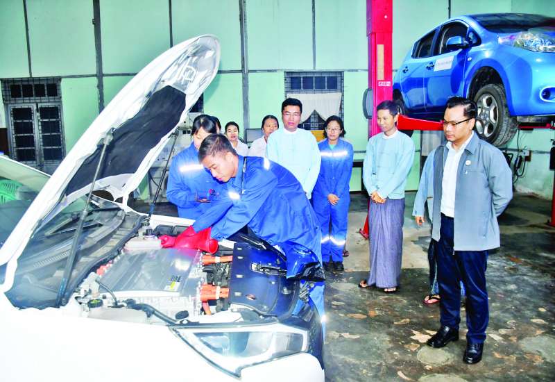 သိပ္ပံနှင့်နည်းပညာ ဝန်ကြီးဌာန ဒုတိယဝန်ကြီး ဒေါက်တာ အောင်ဇေယျသည် ယနေ့ညနေ ပိုင်းက ပြင်ဦးလွင်မြို့ရှိနည်းပညာ မြှင့်တင်ရေးနှင့် ပူးပေါင်းဆောင်ရွက်ရေးဦးစီးဌာန မော်တော်ယာဉ်နည်းပညာ သုတေသနဌာန၌ သုတေသနလုပ်ငန်းများ ဆောင်ရွက်နေမှု အခြေအနေများ၊ EV နည်းပညာ ပြန့်ပွားရေးနှင့် လူ့စွမ်းအားအရင်းအမြစ်ဖွံ့ဖြိုးရေး သင်တန်းများအတွက် သင်ထောက် ကူပစ္စည်းများ ဖြည့်တင်းထားမှု အခြေအနေများကို ကြည့်ရှု စစ်ဆေးသည်။