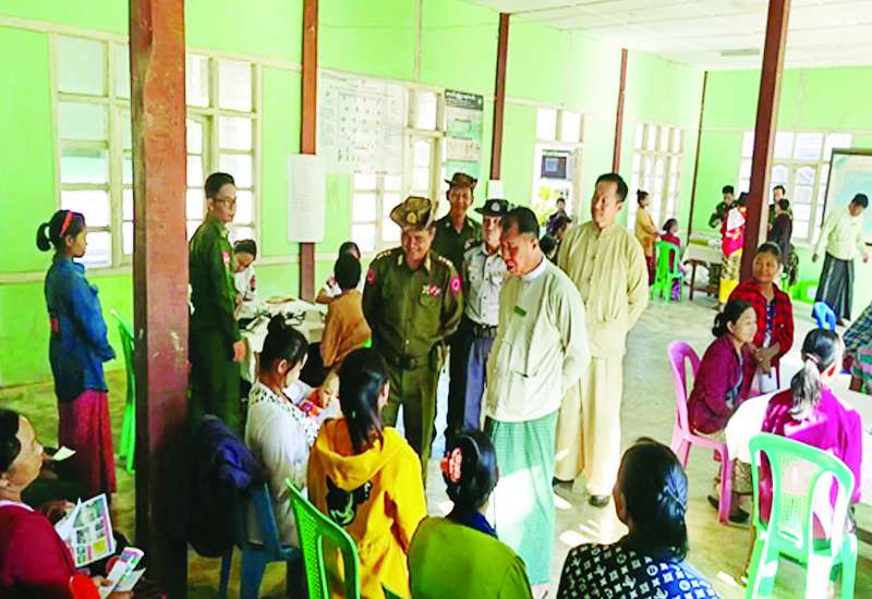 စစ်ကိုင်းတိုင်းဒေသကြီး ခန္တီးမြို့နယ် စိန်နန်းကျေးရွာရှိ ဒေသခံပြည်သူများအား အနောက်မြောက်တိုင်းစစ်ဌာနချုပ် နယ်မြေခံဆေးကုသရေးအဖွဲ့က ယနေ့တွင် အဆိုပါ ကျေးရွာအခြေခံပညာမူလတန်းကျောင်း၌ လိုအပ်သည့်ကျန်းမာရေး စောင့်ရှောက်မှုလုပ်ငန်းများ ဆောင်ရွက်ပေးသည်။