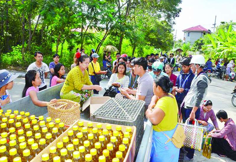 ပြည်သူများ အရည်အသွေးမီ စားသုံးဆီများ ဈေးနှုန်းချိုသာမှန်ကန်စွာဖြင့် ဝယ်ယူစားသုံးနိုင်ရန် တာဝန်ရှိသူများက စီစဉ်ဆောင်ရွက်လျက်ရှိရာ ယနေ့နံနက်ပိုင်းက နေပြည်တော်-တပ်ကုန်းရှိ မြန်မာ့အသံနှင့်ရုပ်မြင်သံကြားမှ ဝန်ထမ်းများအတွက် အရည်အသွေးမီ စားသုံးဆီများကို တစ်ပိဿာလျှင် ငွေကျပ် ၅၃၀၀ နှုန်းဖြင့် လာရောက်ရောင်းချပေးသည်။