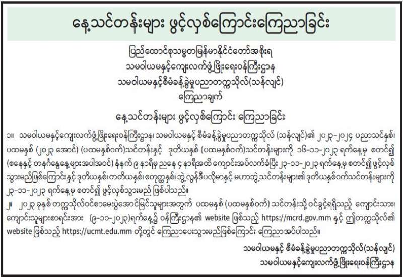 ကျန်းမာရေးဝန်ကြီးဌာနသည် ကိုဗစ်-၁၉ ရောဂါ စောင့်ကြပ်ကြည့်ရှုခြင်းလုပ်ငန်းများကို ဆောင်ရွက်လျက်ရှိရာ (၁၂-၁၁-၂၀၂၃) ရက်နေ့၊ ည(၈:၀၀)နာရီမှ (၁၃-၁၁-၂၀၂၃) ရက်နေ့၊ ည(၈:၀၀)နာရီအတွင်း ဓာတ်ခွဲနမူနာစုစုပေါင်း (၃,၀၁၃)ခုအား စစ်ဆေးပြီးစီးခဲ့ရာ COVID-19 ရောဂါ ဓာတ်ခွဲအတည်ပြုလူနာသစ်(၁)ဦး တွေ့ရှိရပါသည်။ ထို့ကြောင့် ယနေ့အတွက် ရောဂါပိုးတွေ့ရှိမှုရာခိုင်နှုန်းမှာ (၀.၀၃) ရာခိုင်နှုန်းဖြစ်ပါသည်။ ယနေ့တွင် COVID-19 ရောဂါဖြင့် သေဆုံးသူမရှိပါ။