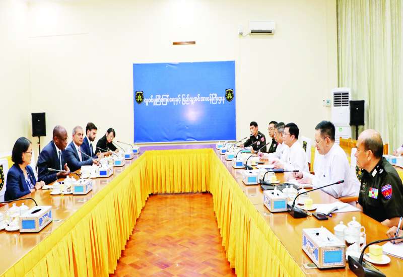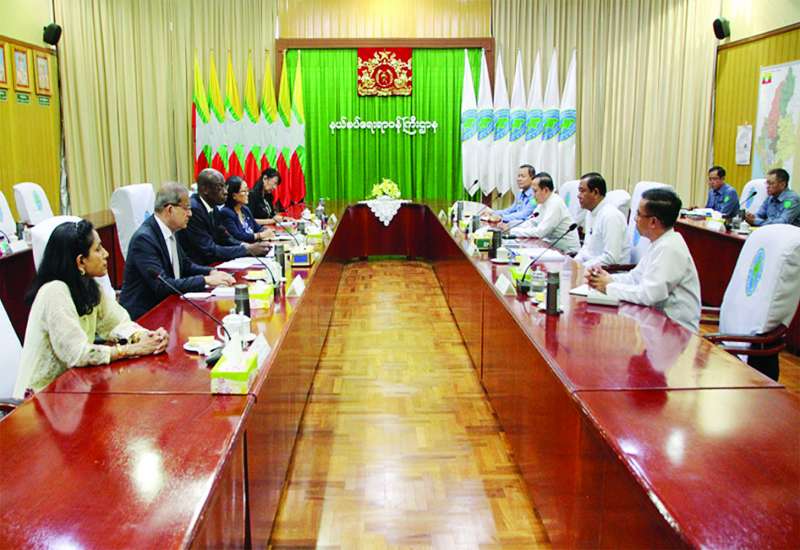လူဝင်မှုကြီးကြပ်ရေးနှင့် ပြည်သူ့အင်အားဝန်ကြီးဌာန ပြည်ထောင်စုဝန်ကြီး ဦးမြင့်ကြိုင် သည် ကုလသမဂ္ဂလက်ထောက်အတွင်းရေးမှူးချုပ်ဖြစ်သူ UNHCR ၏ လုပ်ငန်းလည်ပတ်မှုဆိုင်ရာ လက်ထောက်မဟာမင်းကြီး Mr. Raouf Mazou နှင့်အဖွဲ့ကို ယနေ့ မွန်းတည့် ၁၂ နာရီတွင် နေပြည်တော်ရှိ အဆိုပါဝန်ကြီးဌာန အစည်းအဝေးခန်းမ၌ လက်ခံတွေ့ဆုံသည်။