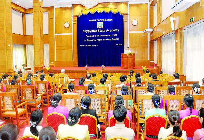 Naypyitaw State Academy တည်ထောင်သည့် (၁)နှစ်ပြည့် အထိမ်းအမှတ် စာတမ်းဖတ်ပွဲ ဖွင့်ပွဲအခမ်းအနားကို ယနေ့နံနက် ၉ နာရီတွင် အဆိုပါတက္ကသိုလ်ရှိ ဘွဲ့နှင်းသဘင်ခန်းမ၌ကျင်းပရာ ပညာရေးဝန်ကြီးဌာန ဒုတိယဝန်ကြီး ဒေါက်တာဇော်မြင့်၊ အမြဲတမ်းအတွင်းဝန် ဒေါက်တာစိုးဝင်း၊ ပညာရေးဝန်ကြီးဌာနရှိ ဦးစီးဌာနများမှ ညွှန်ကြားရေးမှူးချုပ်များ၊ Naypyitaw State Academy ဒုတိယပါမောက္ခချုပ်များ၊ ပါမောက္ခ (ဌာနမှူး)များ၊ စာတမ်းဖတ်ကြားမည့် စာတမ်းရှင်များ၊ ဆရာဆရာမများနှင့် ဖိတ်ကြားထားသူများ တက်ရောက်ကြသည်။