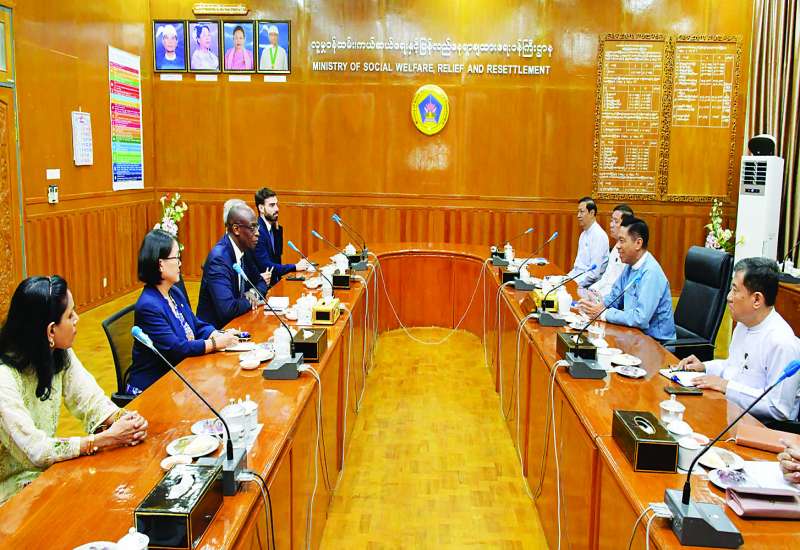 လူမှုဝန်ထမ်း၊ ကယ်ဆယ်ရေးနှင့်ပြန်လည်နေရာချထားရေးဝန်ကြီးဌာန ပြည်ထောင်စုဝန်ကြီး ဒေါက်တာစိုးဝင်းသည် ကုလသမဂ္ဂဒုက္ခသည်များဆိုင်ရာ မဟာမင်းကြီးရုံး (UNHCR) ၏ တတိယ ရာထူးအကြီးဆုံးနှင့် ကုလသမဂ္ဂလက်ထောက်အတွင်းရေးမှူးချုပ်ဖြစ်သူ လုပ်ငန်းလည်ပတ်မှုဆိုင်ရာ လက်ထောက် မဟာမင်းကြီး Mr. Raouf Mazou ဦးဆောင်သောအဖွဲ့ကို ယနေ့ နံနက် ၉ နာရီတွင် အဆိုပါဝန်ကြီးဌာန အစည်းအဝေးခန်းမ၌ တွေ့ဆုံသည်။