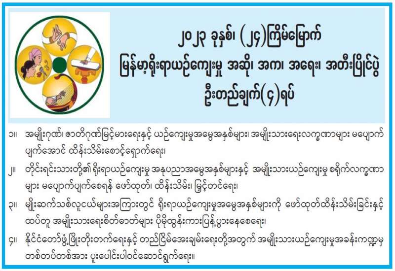 တိုင်းရင်းသားလူမျိုးပေါင်းစုံ စုစည်းနေထိုင်သည့် ပြည်ထောင်စုသမ္မတမြန်မာ နိုင်ငံတော်တွင် ဒီမိုကရေစီနှင့် ဖက်ဒရယ်စနစ်ကို အခြေခံသည့် ပြည်ထောင်စုစနစ်ကို တည်ဆောက်လျက် ရှိသည်။ ဒီမိုကရေစီအုပ်ချုပ်ရေးစနစ်ဖြင့် ဖက်ဒရယ်ဟူသည့် ပေါင်းစည်းနေထိုင်ခြင်း၊ သဟဇာတ ဖြစ်ခြင်း၊ ခွဲဝေခံစားခြင်း၊ အုပ်ချုပ်မှုတာဝန် ခွဲဝေလုပ်ဆောင်ခြင်းတို့သည် ပြည်ထောင်စုမြန်မာနိုင်ငံနှင့် လိုက်ဖက်ဆီလျော် သင့်မြတ်သည့်စနစ်ဖြစ်သည်။ ပြည်သူအားလုံး၏ ဆန္ဒ၊ နိုင်ငံတော်၏အနာဂတ် ရည်မှန်းချက်လည်းဖြစ်သည်။