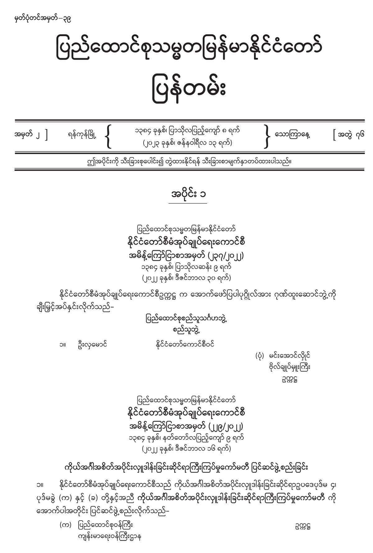 ၂၀၂၁ ခုနှစ် မေလ (၂၈) ရက်ထုတ် အတွဲ (၇၄)၊ အမှတ် (၂၂) ပြန်တမ်းစာစောင် (e-Book)