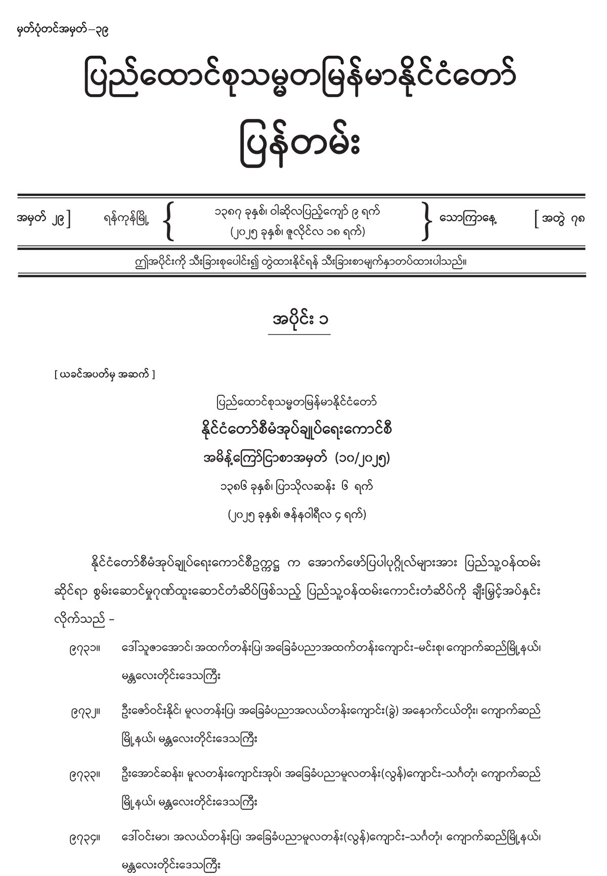 အပိုင်း (၂) တွင် အထွေထွေအုပ်ချုပ်ရေးဦးစီးဌာန အမိန့်ကြော်ငြာစာ၊ မြို့ပြနှင့် အိမ်ရာ ဖွံ့ဖြိုးရေးဦးစီးဌာန အမိန့်ကြော်ငြာစာတို့ ပါဝင်ပါသည်။