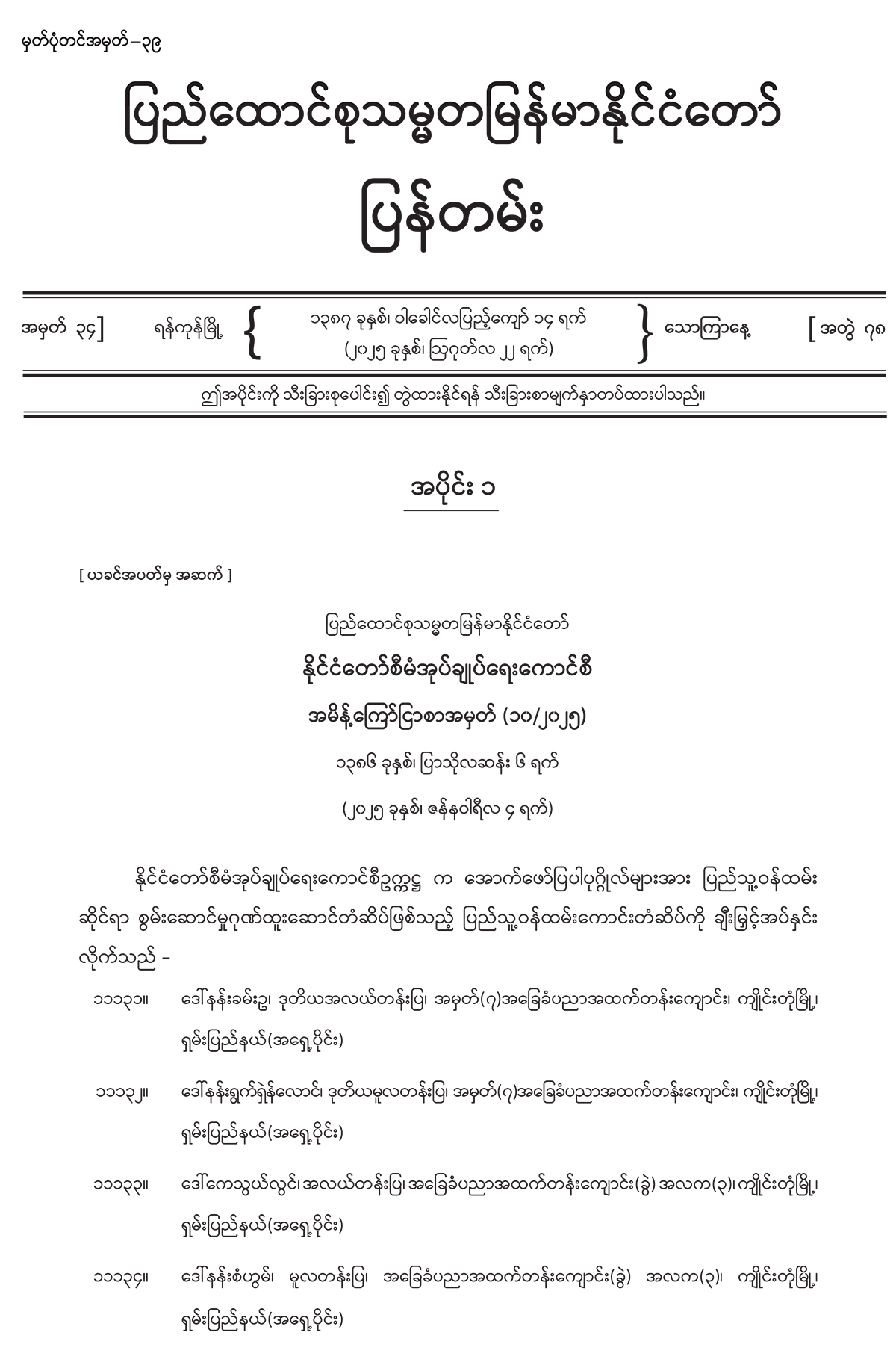 အပိုင်း (၂) တွင် အမျိုးသားလွှတ်တော်ရုံး အမိန့်ကြော်ငြာစာတို့ ပါဝင်ပါသည်။