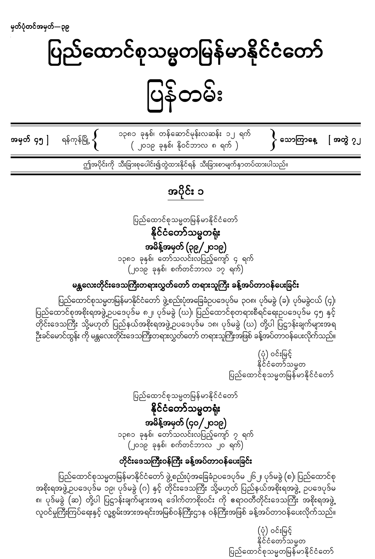 ၂၀၁၉ ခုနှစ် နိုဝင်ဘာလ (၈) ရက်ထုတ်၊ အတွဲ (၇၂)၊ အမှတ် (၄၅) ပြန်တမ်းစာစောင် e-Book