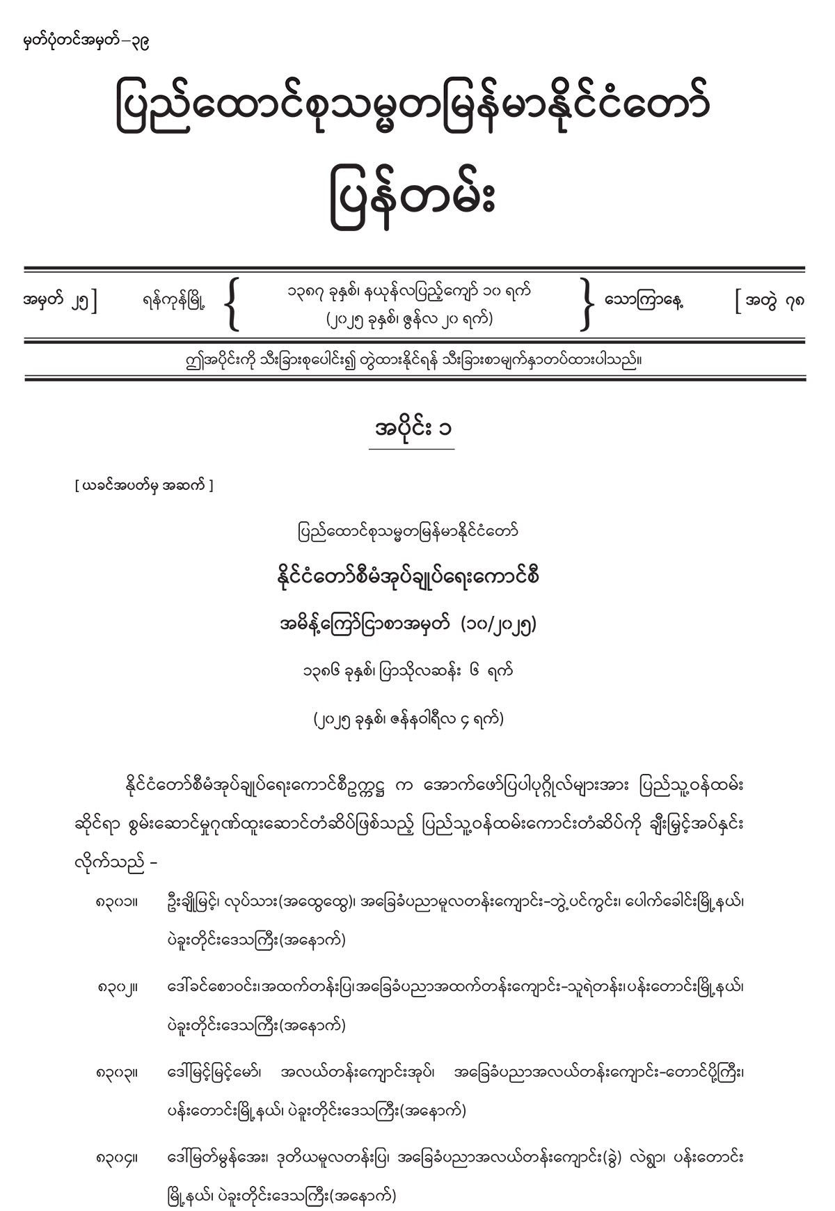 အပိုင်း (၂) တွင် အမျိုးသားလွှတ်တော်ရုံး အမိန့်ကြော်ငြာစာ၊ အထွေထွေအုပ်ချုပ်ရေး ဦးစီးဌာန အမိန့်ကြော်ငြာစာတို့ ပါဝင်ပါသည်။