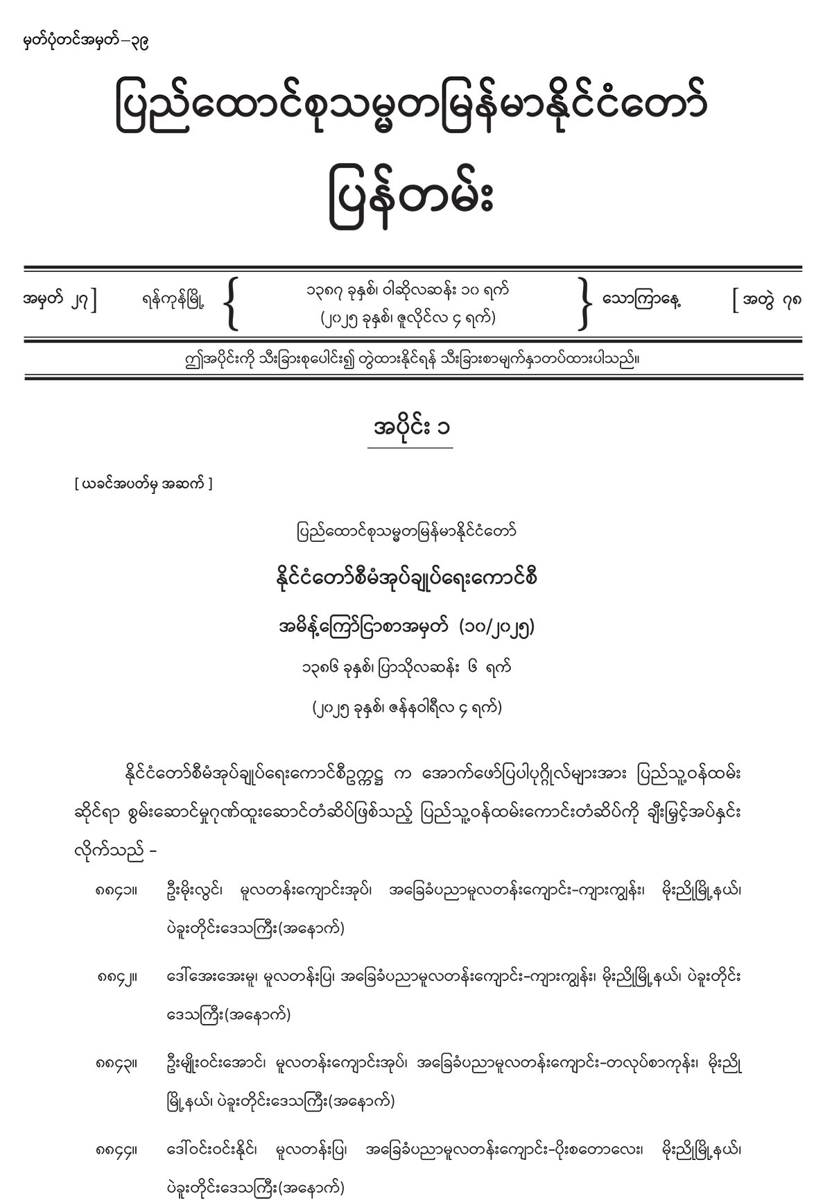 အပိုင်း (၂) တွင် နိုင်ငံတော်စီမံအုပ်ချုပ်ရေးကောင်စီရုံး စီမံရေးနှင့် ဘဏ္ဍာရေးဌာနကြီး အမိန့်ကြော်ငြာစာ၊ မြန်မာ့စာတိုက်လုပ်ငန်း အမိန့်ကြော်ငြာစာတို့ ပါဝင်ပါသည်။