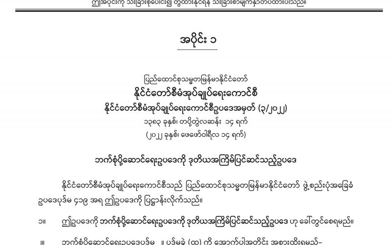 အပိုင်း (၂) တွင် အထွေထွေအုပ်ချုပ်ရေးဦးစီးဌာန အမိန့်ကြော်ငြာစာ၊