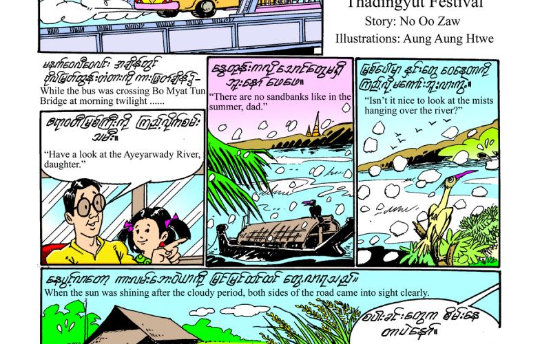 ပြန်ကြားရေးဝန်ကြီးဌာန၊ ပုံနှိပ်ရေးနှင့် ထုတ်ဝေရေးဦးစီးဌာန၊ စာပေဗိမာန်ရုံးသည် အသက် (၁၂) နှစ်နှင့် အောက်ကလေးငယ်များ ဖတ်ရှုနိုင်ရန် ရည်ရွယ်၍ ရွှေသွေးဂျာနယ်ကို အပတ်စဉ် စနေနေ့တိုင်း ထုတ်ဝေလျက်ရှိရာ ၂၀၂၂ ခုနှစ်၊ အောက်တိုဘာလ ၈ ရက် (စနေနေ့)တွင် ထွက်ရှိမည့် ရွှေသွေးဂျာနယ် အတွဲ(၅၄)၊ အမှတ်(၄၁)၌ သီတင်းကျွတ်ကျောင်းပိတ်ရက်တွင် ဘွားဘွားရှိရာ ကျေးရွာလေးသို့ အလည်အပတ် သွားရောက်ခဲ့သော မေပြည့်၏ အတွေ့အကြုံများနှင့် သီတင်းကျွတ်မီးထွန်းပွဲတော်အကြောင်းကို သရုပ်ဖော်တင်ဆက်ထားသည့် “သီတင်းကျွတ် ပွဲတော်” မျက်နှာဖုံးကာတွန်း၊ သီတင်းကျွတ်လပြည့်နေ့၌ မိဘများကို မိမိစုထားသည့် မုန့်ဖိုးများနှင့် မုန့်များဝယ်ကာ ကန်တော့ရ၍ ဝမ်းမြောက်ဝမ်းသာဖြစ်နေသော လင်းသစ်အကြောင်းကို တင်ဆက်ထားသည့် “လင်းသစ်၏ ဝါလကင်းလွတ် သီတင်းကျွတ်” နှစ်မျက်နှာကာတွန်း၊ မိမိမကျွမ်းကျင်သည့်ဘာသာရပ်ကို တတ်ကျွမ်းချင်ယောင်ဆောင် ကာ ဆောင်ရွက်ပါက ဒုက္ခနှင့် ကြုံတွေ့နိုင်ကြောင်းကို တင်ဆက်ထားသည့် “အာတူးနှင့် လိပ်ပု”  နှစ်မျက်နှာ ကာတွန်း၊ မိမိလိုချင်သောအရာကို ကလေးအတွေးဖြင့် ရယူလိုသော ရဲရင့်ဖြိုးအကြောင်းကို တင်ဆက်ထားသည့် “အမွှေလေးရဲရင့်ဖြိုး” နှစ်မျက်နှာကာတွန်း၊ အစားအသောက်များကို မဆင်မခြင်စားမိ၍ ဒုက္ခရောက်ရသော ကိုစံပြူးအကြောင်းကို ရေးဖွဲ့ထားသည့် “ကိုစံပြူးပါဝင်သည့် အလှူငွေ” တစ်မျက်နှာကာတွန်း၊ ဆရာမပြောသည့် အကြောင်းအရာကို တိကျသေချာစွာ မှတ်သားမထားဘဲ မိမိ၏ အထင်ဖြင့်ပြောတတ်သော ဖိုးလပြည့်အကြောင်းကို တင်ဆက်ထားသည့် “ဖိုးလပြည့်” မျက်နှာဝက်ကာတွန်းတို့ကို တင်ဆက်ထားပါသည်။