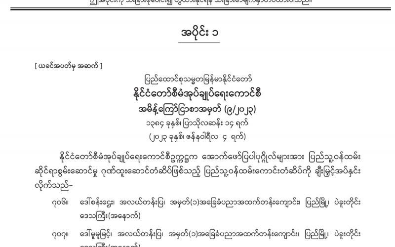အပိုင်း (၂) တွင် နိုင်ငံတော်စီမံအုပ်ချုပ်ရေးကောင်စီရုံး အမိန့်ကြော်ငြာစာ၊ ပြည်တွင်းအခွန်များဦးစီးဌာန အမိန့်ကြော်ငြာစာ