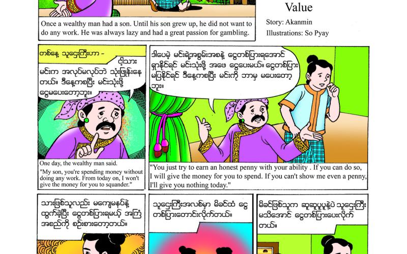 ပြန်ကြားရေးဝန်ကြီးဌာန၊ ပုံနှိပ်ရေးနှင့် ထုတ်ဝေရေးဦးစီးဌာန၊ စာပေဗိမာန်ရုံးသည် အသက် (၁၂) နှစ်အောက် ကလေးငယ်များ ဖတ်ရှုနိုင်ရန် ရည်ရွယ်၍ ရွှေသွေးဂျာနယ်ကို အပတ်စဉ် စနေနေ့တိုင်း ထုတ်ဝေလျက်ရှိရာ ၂၀၂၃ ခုနှစ်၊ ဇွန်လ ၂၄ ရက် (စနေနေ့)တွင် ထွက်ရှိမည့် ရွှေသွေးဂျာနယ် အတွဲ (၅၅)၊ အမှတ် (၂၅)၌ သူဌေးသားသည် ဖခင်သူဌေးကြီး၏ လက်တွေ့ပြပြီး ဆုံးမမှုကြောင့် ငွေကြေးဥစ္စာ၏ တန်ဖိုးကို နားလည်သွားကာ ဖခင်ကြီး၏ အလုပ်မှန်သမျှကို သင်ယူပြီး ကြိုးကြိုးစားစား လုပ်ကိုင်ကာ ရရှိလာသော ငွေကြေးတို့ကို တန်ဖိုးရှိရှိ သုံးစွဲသွားပုံ အကြောင်း ရေးဖွဲ့ထားသည့် “တန်ဖိုး” မျက်နှာဖုံးကာတွန်း၊ မွေးနေ့ရတု အခေါ်အဝေါ်များအကြောင်း ဗဟုသုတဖြစ်ဖွယ် သရုပ်ဖော်ထားသည့် “ရတုမင်္ဂလာ” နှစ်မျက်နှာကာတွန်း၊ အပ်ချုပ်သမားသည် သူ၏ ဒေါသကို မထိန်းချုပ်လိုက်မိရာက အပ်ထည်များမှာ ရွှံ့နှစ်ရည်များ စိုသွားခဲ့ရပုံအကြောင်း ရေးဖွဲ့ထားသည့် “ဒေါသ” နှစ်မျက်နှာကာတွန်း၊ အလွန်အားနာတတ်သည့် ဦးရွှေရိုးကြီးအကြောင်း ဟာသဖြစ်ဖွယ် သရုပ်ဖော်ထားသည့် “ကီးကီနှင့် အားနာတတ်သူ” နှစ်မျက်နှာကာတွန်း၊ အာတူးသည် စာမကျက်ဘဲ သူ၏အဖေ ဝယ်ပေးမည့် စက်ဘီးကို စီးတတ်ရန်အတွက် စက်ဘီးငှားပြီး လေ့ကျင့်နေကြောင်း ရေးဖွဲ့ထားသည့် “ဦးခေါလုနှင့် တပည့်များ” တစ်မျက်နှာကာတွန်းနှင့် ဘိုးဘိုး၏ မုတ်ဆိတ်မွေးများမှာ ပြန်ရှည်လာသော်လည်း ခေါင်းပေါ်က ဆံပင်များမှာမူ ပြန်ရှည်မလာ ကြောင်း တင်ဆက်ထားသည့် “ဘယ်ကျော်” မျက်နှာဝက်ကာတွန်းတို့ကို တင်ဆက်ထားပါသည်။