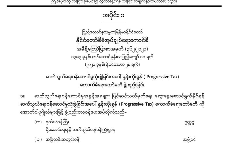 အပိုင်း (၁) တွင်  နိုင်ငံတော်စီမံအုပ်ချုပ်ရေးကောင်စီ အမိန့်ကြော်ငြာစာ၊ တရားလွှတ်တော်ရှေ့နေများကောင်စီ ကြေညာချက်၊ ပြည်ထောင်စုရွေးကောက်ပွဲကော်မရှင် အမိန့်ကြော်ငြာစာ၊ မြန်မာနိုင်ငံ စားသုံးသူ ကာကွယ်ရေးကော်မရှင် အမိန့်ကြော်ငြာစာ၊ မြန်မာနိုင်ငံအစားအသောက်နှင့် ဆေးဝါး အာဏာပိုင်အဖွဲ့ အမိန့်ကြော်ငြာစာ၊ ပြည်ထဲရေးဝန်ကြီးဌာန (ဝန်ကြီးရုံး) အမိန့်ကြော်ငြာစာ၊ ပြန်ကြားရေးဝန်ကြီးဌာန (ဝန်ကြီးရုံး) အမိန့်ကြော်ငြာစာ၊ သာသနာရေးနှင့် ယဉ်ကျေးမှုဝန်ကြီးဌာန (ဝန်ကြီးရုံး) အမိန့်ကြော်ငြာစာ၊ စိုက်ပျိုးရေး၊ မွေးမြူရေးနှင့် ဆည်မြောင်းဝန်ကြီးဌာန (ပြည်ထောင်စုဝန်ကြီးရုံး) အမိန့်ကြော်ငြာစာ၊ ပို့ဆောင်ရေးနှင့် ဆက်သွယ်ရေးဝန်ကြီးဌာန (ဝန်ကြီးရုံး) အမိန့်ကြော်ငြာစာ၊ စက်မှုဝန်ကြီးဌာန အမိန့်ကြော်ငြာစာ၊ အလုပ်သမားဝန်ကြီးဌာန (ဝန်ကြီးရုံး) အမိန့်ကြော်ငြာစာ၊ ၊ ပညာရေးဝန်ကြီးဌာန (ဝန်ကြီးရုံး) အမိန့်ကြော်ငြာစာ၊ ကျန်းမာရေးဝန်ကြီးဌာန အမိန့်ကြော်ငြာစာ၊ မကွေးတိုင်းဒေသကြီးအစိုးရအဖွဲ့ ရုံးအမိန့်၊ ရခိုင်ပြည်နယ်အစိုးရအဖွဲ့ အမိန့်ကြော်ငြာစာ၊