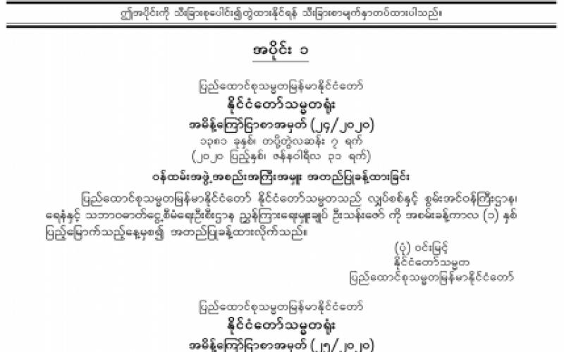 ပြည်ထောင်စုသမ္မတ မြန်မာနိုင်ငံတော်ပြန်တမ်းများကို ပြန်ကြားရေးဝန်ကြီးဌာန ပုံနှိပ်ရေးနှင့် ထုတ်ဝေရေးဦးစီးဌာနက ထုတ်ဝေဖြန့်ချိလျက်ရှိရာ ၂၀၂၀ ပြည့်နှစ် မတ်လ ၆ ရက်ထုတ် အတွဲ (၇၃)၊ အမှတ် (၁၀) ပြန်တမ်းစာစောင်ကို စာပေဗိမာန်စာအုပ် အရောင်းဆိုင်များမှတဆင့် စတင် ဖြန့်ချိ ရောင်းချလျက်ရှိပြီ ဖြစ်ပါသည်။ ယခုတစ်ပတ်ထုတ် မြန်မာနိုင်ငံတော်ပြန်တမ်းတွင် အပိုင်း (၁) အပိုင်း (၂) နှင့် အပိုင်း (၄) တို့ ပါရှိပါသည်။