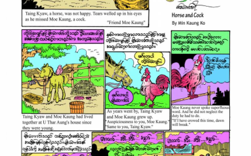 ပြန်ကြားရေးဝန်ကြီးဌာန၊ ပုံနှိပ်ရေးနှင့် ထုတ်ဝေရေးဦးစီးဌာန၊ စာပေဗိမာန်ရုံးသည် အသက် (၁၂) နှစ်အောက် ကလေးများ ဖတ်ရှုနိုင်ရန် ရည်ရွယ်၍ ရွှေသွေးဂျာနယ်ကို အပတ်စဉ် စနေနေ့တိုင်း ထုတ်ဝေလျက်ရှိရာ ၂၀၂၀ ပြည့်နှစ်၊ မတ်လ ၁၄ ရက် (စနေနေ့) တွင် ထွက်ရှိမည့် ရွှေသွေးဂျာနယ် အတွဲ (၅၂)၊ အမှတ် (၁၁) ၌ မြင်းနှင့် ကြက်တို့၏ ကျေးဇူးရှင်သခင်တို့ကို ကျေးဇူးသိတတ်ပုံအကြောင်းကို အရေးဖွဲ့ထားသည့် “မြင်းနှင့် ကြက်” မျက်နှာဖုံးကာတွန်း၊ အာတူး၏ ထိုးထွင်းကြံဆနိုင်မှု စွမ်းရည်အကြောင်းကို ရေးဖွဲ့ထားသည့် “အာတူးရဲ့ ဒါလေးများ” နှစ်မျက်နှာကာတွန်း၊ ချက်ပြုတ်ထားသော အသားထဲတွင် ပိုးမွှားအသေကောင်များ ပါရှိပုံအကြာင်းကို ဟာသဖြစ်ဖွယ် ရေးဖွဲ့ထားသည့် “ဘယ်ကျော်” တစ်မျက်နှာကာတွန်း၊ စိန်မျောက်မျောက်၏ သူတစ်ပါးအား လှောင်ပြောင်ရာမှ မိမိတွင် လည်း ဒုက္ခရောက်ရပုံအကြောင်းကို ရေးဖွဲ့ထားသည့် “စိန်မျောက်မျောက်- ရယ်ရတယ်’’ နှစ်မျက်နှာ ကာတွန်းနှင့် ပညာရှိယုန်လေး၏ မိမိအသက်ဘေးမှ လွတ်မြောက်နိုင်ရန် အကြံကောင်းထုတ်နိုင်ခဲ့ပုံ အကြောင်း ရေးဖွဲ့ထားသည့် ‘နှာစေးနေတဲ့ ယုန်” တစ်မျက်နှာကာတွန်းတို့ကို တင်ဆက်ထားပါသည်။