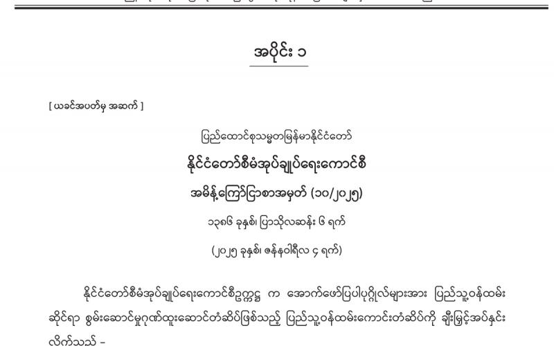 အပိုင်း (၂) တွင် အမျိုးသားလွှတ်တော်ရုံး အမိန့်ကြော်ငြာစာတို့ ပါဝင်ပါသည်။