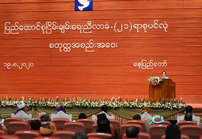 ပြည်ထောင်စုငြိမ်းချမ်းရေးညီလာခံ - (၂၁) ရာစုပင်လုံ စတုတ္ထအစည်းအဝေး ဖွင့်ပွဲအခမ်းအနားကို ယနေ့ နံနက် ၁၀ နာရီတွင် နေပြည်တော်ရှိ မြန်မာအပြည်ပြည် ဆိုင်ရာ ကွန်ဗင်းရှင်းဗဟိုဌာန (၂) (MICC – 2)၌ ကျင်းပသည်။
