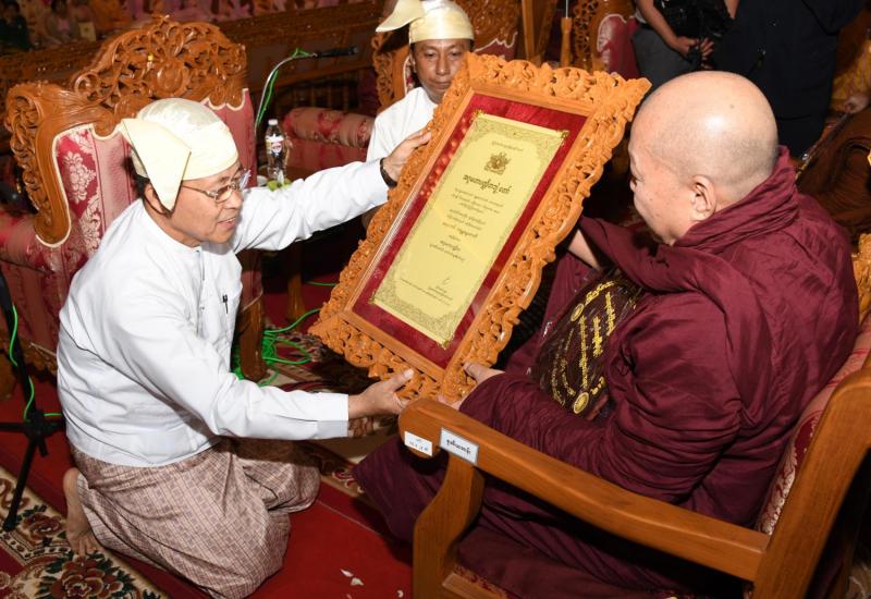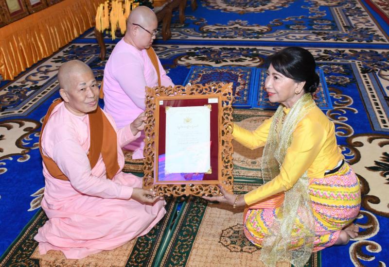 ၂၀၂၀ ပြည့်နှစ် သာသနာတော်ဆိုင်ရာ ဘွဲ့တံဆိပ်တော်များ ဆက်ကပ်ပူဇော်ပွဲ မဟာမင်္ဂလာ အခမ်းအနားကို ယနေ့မွန်းလွဲ ၁ နာရီတွင် နေပြည်တော် ဥပ္ပါတသန္တိစေတီတော်ပရိဝုဏ်အတွင်းရှိ သာသနာ့မဟာဗိမာန်တော်ကြီး၌ ကျင်းပရာ နိုင်ငံတော် သမ္မတ ဦးဝင်းမြင့်နှင့်ဇနီး ဒေါ်ချိုချို၊ နိုင်ငံတော်၏အတိုင် ပင်ခံပုဂ္ဂိုလ် ဒေါ်အောင်ဆန်းစုကြည် တို့ တက်ရောက်ကြည်ညို၍ သာသနာတော်ဆိုင်ရာ ဘွဲ့တံဆိပ် တော်များဆက်ကပ်ပူဇော်ကြသည်။