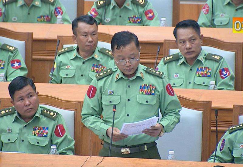အစည်းအဝေးတွင် ပြည်ထဲရေးဝန်ကြီးဌာန၊ ပြည်ထောင်စုဝန်ကြီးအဖြစ် ခန့်အပ် တာဝန်ပေးခြင်းခံရသော ဒုတိယဗိုလ်ချုပ်ကြီး စိုးထွဋ် က ပြည်ထောင်စုလွှတ်တော် နာယက ဦးတီခွန်မြတ် ရှေ့မှောက်၌ ကတိသစ္စာပြုသည်။