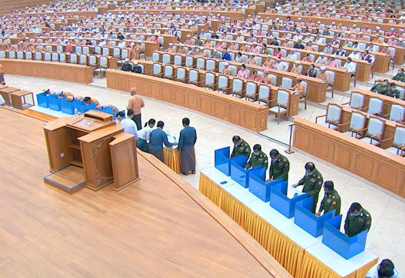 ယနေ့ကျင်းပသည့် ဒုတိယအကြိမ် ပြည်ထောင်စုလွှတ်တော် (၁၅)ကြိမ်မြောက် ပုံမှန်အစည်းအဝေး (၁၈) ရက်မြောက်နေ့တွင် ဖွဲ့စည်းပုံအခြေခံဥပဒေကို ဒုတိယအကြိမ် ပြင်ဆင်သည့် ဥပဒေမူကြမ်းများပါ ပုဒ်မ၊ ပုဒ်မခွဲများအပေါ် လွှတ်တော်ကိုယ်စားလှယ်များက ဆွေးနွေးကြသည်။