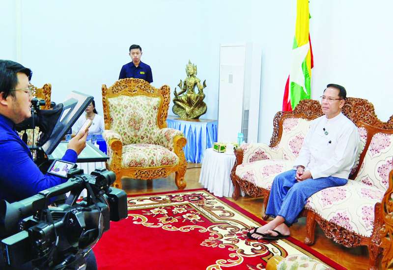 ပြန်ကြားရေးဝန်ကြီးဌာန ပြည်ထောင်စုဝန်ကြီး ဦးမောင်မောင်အုန်းသည် မြန်မာ့ရုပ်မြင်သံကြားနှင့် တရုတ်နိုင်ငံယူနန်ပြည်နယ်မှ Yunnan Media Group (YMG) တို့ ပူးပေါင်းရိုက်ကူးလျက်ရှိသည့် “လန်ချန်း-မဲခေါင် ရွှေရောင်အနာဂတ်များဆီသို့” ရုပ်သံမှတ်တမ်း အစီအစဉ်တွင် ပြန်ကြားရေးကဏ္ဍမှတစ်ဆင့် တရုတ်-မြန်မာ နှစ်နိုင်ငံပြည်သူများအကြား ချစ်ကြည်ရင်းနှီးမှုနှင့် နားလည်မှုတိုးမြှင့်လာစေရန် ဆောင်ရွက်ပေးမှုနှင့်စပ်လျဉ်း၍ ပူးပေါင်းရိုက်ကူးရေးအဖွဲ့၏ တွေ့ဆုံမေးမြန်းမှုကို ယနေ့နံနက်ပိုင်းတွင် ပြန်ကြားရေးဝန်ကြီးဌာန ဧည့်ခန်းမ၌ လက်ခံဖြေကြားသည်။