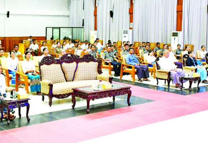 Gender/ CEDAW/ NSPAW/ AGMSF/ WPS အသိပညာပေး သင်တန်းဖွင့်ပွဲအခမ်းအနားကို ယနေ့နံနက်ပိုင်းတွင် နေပြည်တော်ရှိ လူမှုဝန်ထမ်း၊ ကယ်ဆယ်ရေးနှင့်ပြန်လည်နေရာချထားရေးဝန်ကြီးဌာန စုပေါင်းအစည်းအဝေးခန်းမ၌ ကျင်းပရာ လူမှုဝန်ထမ်း၊ ကယ်ဆယ်ရေးနှင့်ပြန်လည်နေရာချထားရေးဝန်ကြီးဌာန ပြည်ထောင်စုဝန်ကြီး ဒေါက်တာ စိုးဝင်းနှင့် တာဝန်ရှိသူများ၊ ပြည်ထဲရေးဝန်ကြီးဌာနအောက်ရှိ ဌာနများမှ သင်တန်းသား ၁၆ ဦး၊ သင်တန်းသူ ၁၉ ဦးတို့ တက်ရောက်ကြသည်။