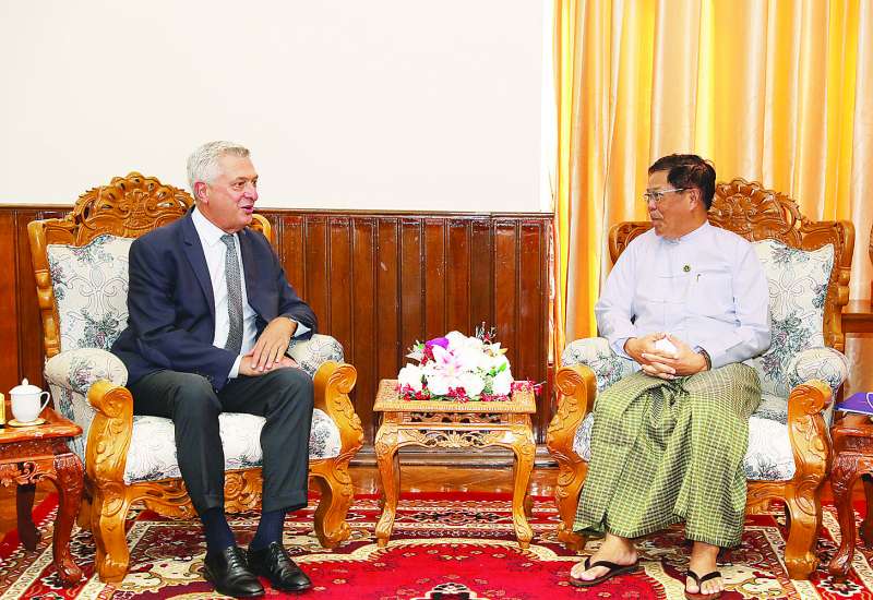 နယ်စပ်ရေးရာဝန်ကြီးဌာန ပြည်ထောင်စုဝန်ကြီး ဒုတိယဗိုလ်ချုပ်ကြီး ရာပြည့်သည် ကုလသမဂ္ဂဒုက္ခသည်များဆိုင်ရာ မဟာမင်းကြီး Mr. Filippo Grandi အား ယနေ့နံနက်ပိုင်းတွင် နယ်စပ်ရေးရာဝန်ကြီးဌာန ပြည်ထောင်စုဝန်ကြီး၏ ဧည့်ခန်းမ၌ လက်ခံတွေ့ဆုံသည်။