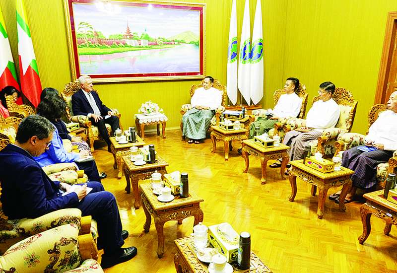 နိုင်ငံခြားရေးဝန်ကြီးဌာန ပြည်ထောင်စုဝန်ကြီး ဦးသန်းဆွေသည် ကုလသမဂ္ဂဒုက္ခသည်များဆိုင်ရာ မဟာမင်းကြီး Mr. Filippo Grandi အား ယနေ့နံနက်ပိုင်းတွင် နေပြည်တော်ရှိ နိုင်ငံခြားရေးဝန်ကြီးဌာန၌ လက်ခံတွေ့ဆုံသည်။