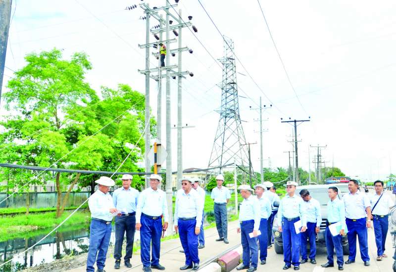 ရန်ကုန်-ပုသိမ်လမ်းမကြီး အဆင့်မြှင့်တင်ခြင်းလုပ်ငန်းများဆောင်ရွက်ရာတွင် လမ်းနယ်နှင့် မလွတ်ကင်းသော လျှပ်စစ်ဓာတ်အားလိုင်းများ ရွှေ့ပြောင်းတည်ဆောက်ခြင်း လုပ်ငန်းဆောင်ရွက်နေမှုကို လျှပ်စစ်စွမ်းအားဝန်ကြီးဌာန ပြည်ထောင်စုဝန်ကြီး ဦးဉာဏ်ထွန်းသည် ရန်ကုန်လျှပ်စစ်ဓာတ်အားပေးရေးကော်ပိုရှေးရှင်းဥက္ကဋ္ဌ၊ ဌာနဆိုင်ရာတာဝန်ရှိသူများနှင့်အတူ ယနေ့မွန်းလွဲပိုင်းက လှည့်လည်ကြည့်ရှုစစ်ဆေးသည်။