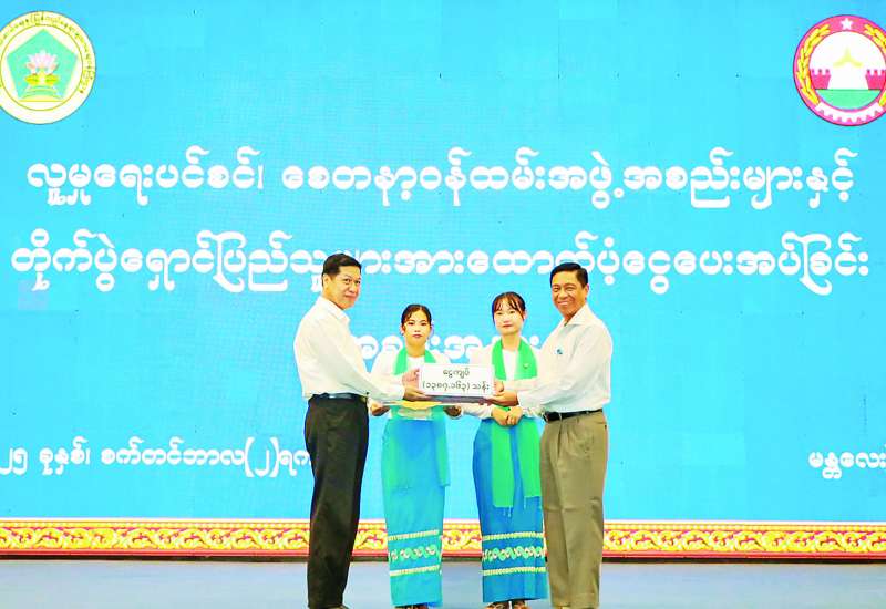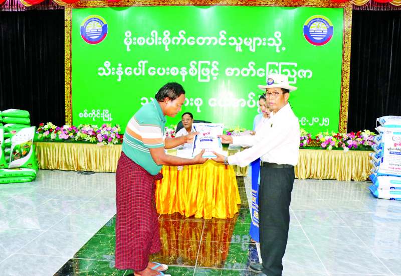 မြို့သစ်မြို့နယ်အတွင်း နိုင်ငံ့စီးပွားမြှင့်တင်ရေးရန်ပုံငွေနှင့် အကျုံးမဝင်သော မိုးစပါးစိုက်တောင်သူများသို့ သီးနှံပေါ်ပေးစနစ်ဖြင့် သွင်းအားစုဓာတ်မြေဩဇာများပေးအပ်ပွဲနှင့် ဆောင်းမြေပဲစိုက်တောင်သူများအတွက် နိုင်ငံတော်ထောက်ပံ့ရန်ပုံငွေဖြင့် မျိုး၊ သွင်းအားစု၊ မြေဩဇာပေးအပ်ပွဲအခမ်းအနားကို ယနေ့နံနက်ပိုင်းတွင် မြို့သစ်မြို့စိုက်ပျိုးရေးဦးစီးဌာန စိုက်ပျိုးပညာပေးရေးနှင့် ဒေသဖွံ့ဖြိုးရေးသင်တန်းကျောင်းခန်းမ၌ကျင်းပရာ သမဝါယမနှင့်ကျေးလက်ဖွံ့ဖြိုးရေးဝန်ကြီးဌာန ပြည်ထောင်စုဝန်ကြီး ဦးလှမိုး၊ မကွေးတိုင်းဒေသကြီးဝန်ကြီးချုပ် ဦးတင့်လွင်၊ တိုင်းဒေသကြီးဝန်ကြီးများနှင့် ဌာနဆိုင်ရာတာဝန်ရှိသူများ တက်ရောက်ကြသည်။