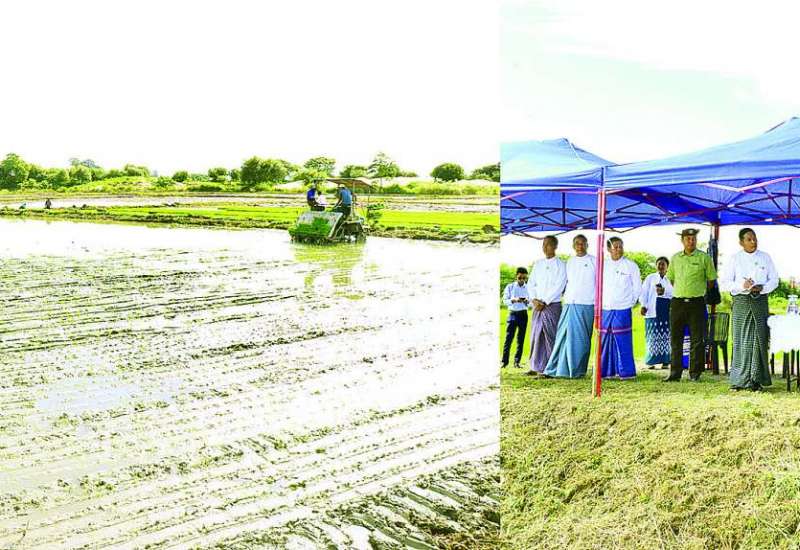 လူစီးကောက်စိုက်စက်ဖြင့် မိုးစပါးစိုက်ပျိုးသရုပ်ပြပွဲကို ယနေ့နံနက်ပိုင်းတွင် နေပြည်တော်ကောင်စီနယ်မြေ လယ်ဝေးမြို့နယ် ရုံးတောကျေးရွာရှိ ရွှေဝါထွန်း(၂) စိုက်ပျိုးထုတ်လုပ်ရေးသမဝါယမအသင်းလီမိတက်၏ အသင်းပိုင်လယ်မြေဧက ၂၀ ၌ကျင်းပရာ သမဝါယမနှင့်ကျေးလက်ဖွံ့ဖြိုးရေးဝန်ကြီးဌာန ပြည်ထောင်စုဝန်ကြီး ဦးလှမိုး၊ အမြဲတမ်းအတွင်းဝန်၊ ဌာနဆိုင်ရာများ၊ မြန်မာနိုင်ငံမြေဩဇာ၊ မျိုးစေ့နှင့် စိုက်ပျိုးရေးဆေးလုပ်ငန်းရှင်များအသင်းနှင့် မြန်မာနိုင်ငံဆန်စပါးအသင်းချုပ်တို့မှ ကိုယ်စားလှယ်များ၊ မြန်မာနိုင်ငံတော်ဗဟိုဘဏ်၊ မြန်မာ့စီးပွားရေးဘဏ်နှင့် ဦးစီးဌာနများမှ ဦးဆောင်ကော်မတီအဖွဲ့ဝင်များနှင့် တာဝန်ရှိသူများ တက်ရောက်ကြသည်။
