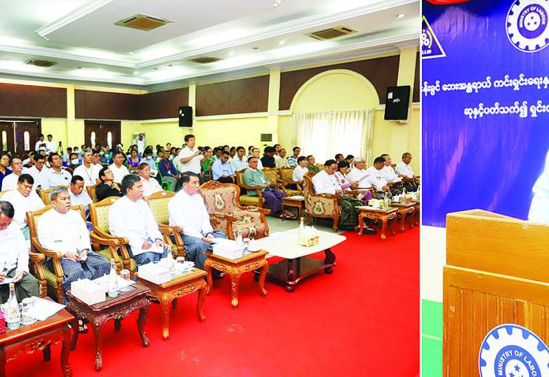 (၅)ကြိမ်မြောက် အာဆီယံလုပ်ငန်းခွင် ဘေးအန္တရာယ်ကင်းရှင်းရေးနှင့် ကျန်းမာရေးကွန်ရက်ဆုနှင့်ပတ်သက်သည့် ရှင်းလင်းဆွေးနွေးပွဲကို ယနေ့မွန်းလွဲပိုင်းတွင် ရန်ကုန်တိုင်းဒေသကြီး လှိုင်သာယာမြို့နယ် ကနောင်ခန်းမ၌ ကျင်းပသည်။