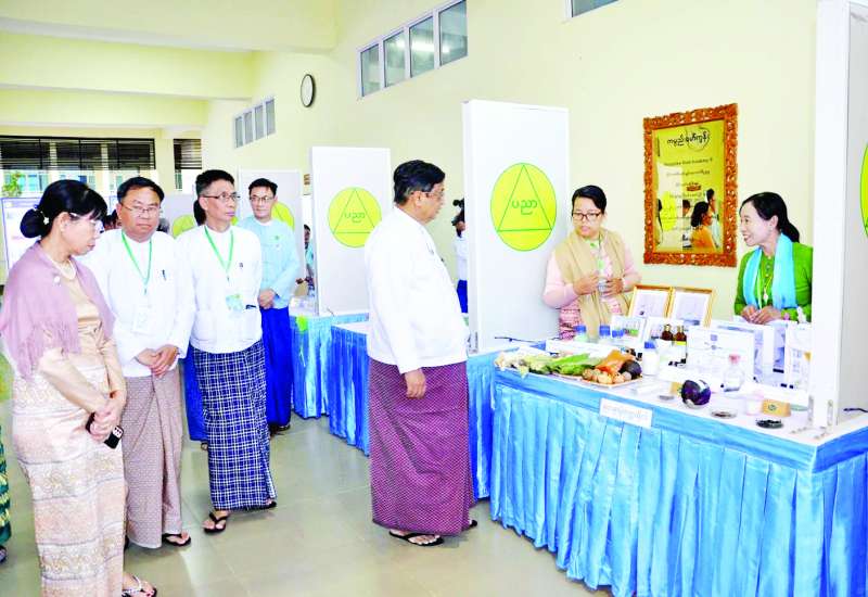 အသေးစား၊ အငယ်စားနှင့်အလတ်စားစီးပွားရေးလုပ်ငန်းများ ဖွံ့ဖြိုးတိုးတက်ရေးလုပ်ငန်းကော်မတီ ဒုတိယဥက္ကဋ္ဌ စက်မှုဝန်ကြီးဌာန ပြည်ထောင်စုဝန်ကြီး ဒေါက်တာချာလီသန်းသည် ယနေ့ညနေပိုင်းတွင် နေပြည်တော် State Academy သို့ သွားရောက်၍ (၂၃) ကြိမ်မြောက် ဝိဇ္ဇာနှင့် သိပ္ပံသုတေသနညီလာခံတွင် ခင်းကျင်းပြသထားသည့် သုတေသနစာတမ်းများကို ကြည့်ရှုအားပေးရာ တက္ကသိုလ်အသီးသီးမှ ပါမောက္ခချုပ်များ၊ ဌာနမှူးများက သက်ဆိုင်ရာ သုတေသနစာတမ်းများကို ရှင်းလင်းတင်ပြသည်။