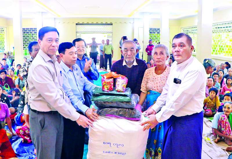 အမျိုးသားသဘာဝဘေးအန္တရာယ်ဆိုင်ရာ စီမံခန့်ခွဲမှုကော်မတီဥက္ကဋ္ဌ ပြည်ထဲရေးဝန်ကြီးဌာန ပြည်ထောင်စုဝန်ကြီး ဒုတိယဗိုလ်ချုပ်ကြီး ထွန်းထွန်းနောင်သည် လူမှုဝန်ထမ်း၊ ကယ်ဆယ်ရေးနှင့်ပြန်လည်နေရာချထားရေးဝန်ကြီးဌာန ဒုတိယဝန်ကြီး ဒေါက်တာသန်းစိုး၊ မြန်မာနိုင်ငံရဲတပ်ဖွဲ့ ရဲချုပ် ဒုတိယရဲဗိုလ်ချုပ်ကြီး ဝင်းဇော်မိုးနှင့်အတူ ယနေ့နံနက်ပိုင်းတွင် ရှမ်းပြည်နယ် (မြောက်ပိုင်း) နောင်ချိုမြို့သို့ သွားရောက်၍ ဌာနဆိုင်ရာတာဝန်ရှိသူများနှင့် ဒေသခံပြည်သူများအား သွားရောက်တွေ့ဆုံအားပေးစကားပြောကြားကာ ထောက်ပံ့ပစ္စည်းများ ပေးအပ်ပြီး ပြန်လည်ထူထောင်ရေးလုပ်ငန်းဆောင်ရွက်မှုအခြေအနေများကို ကြည့်ရှုစစ်ဆေးသည်။