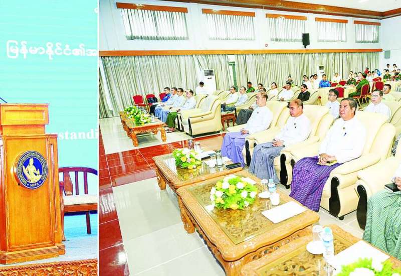 မြန်မာနိုင်ငံ၏ အပြည်ပြည်ဆိုင်ရာနယ်နိမိတ်အကြောင်း သိကောင်းစရာအလုပ်ရုံဆွေးနွေးပွဲ ဒုတိယနေ့ကို နိုင်ငံခြားရေးဝန်ကြီးဌာန လောကနတ်ခန်းမ၌ ယနေ့ ဆက်လက်ကျင်းပသည်။
