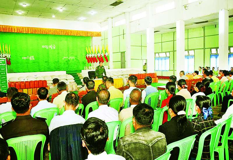ကျောက်ဆည်မြို့နယ်အတွင်း နိုင်ငံ့စီးပွားမြှင့်တင်ရေးရန်ပုံငွေနှင့် အကျုံးမဝင်သော မိုးစပါးစိုက်တောင်သူများထံ သီးနှံပေါ်ပေးစနစ်ဖြင့် သွင်းအားစုဓာတ်မြေဩဇာများ ပေးအပ်ပွဲကို ယနေ့နံနက်ပိုင်းက မန္တလေးတိုင်းဒေသကြီး ကျောက်ဆည်မြို့ နယ် ကုလကျေးရွာ ဘက်စုံသုံးခန်းမ၌ ကျင်းပရာ သမဝါယမနှင့်ကျေးလက်ဖွံ့ဖြိုးရေးဝန်ကြီးဌာန ပြည်ထောင်စုဝန်ကြီး ဦးလှမိုး၊ မန္တလေးတိုင်းဒေသကြီး ဝန်ကြီးချုပ် ဦးမျိုးအောင်နှင့် တာဝန်ရှိသူများ တက်ရောက်ကြသည်။