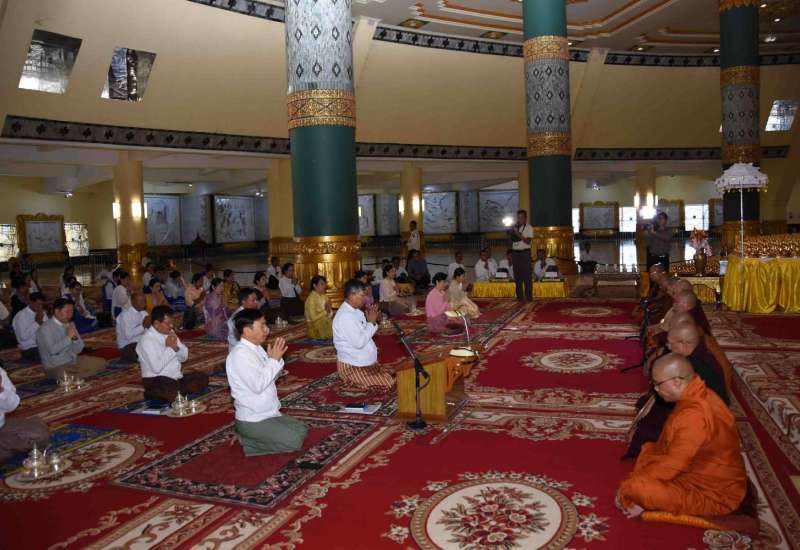 ပန်းပေါင်းစုံဗုဒ္ဓရုပ်ပွားတော် ၉၉၉၉ ဆူအား ဗုဒ္ဓါဘိသေကအနေကဇာတင် ပူဇော်ခြင်းအခမ်းအနားကို ယနေ့နံနက် ၆ နာရီခွဲတွင် နေပြည်တော် ဥပ္ပါတသန္တိစေတီတော်မြတ်ကြီး လိုဏ်ဂူတော်အတွင်း၌ ကျင်းပသည်။