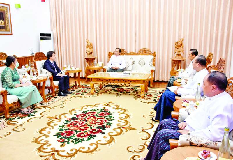 ကျန်းမာရေးဝန်ကြီးဌာန ပြည်ထောင်စုဝန်ကြီး ပါမောက္ခ ဒေါက်တာသက်ခိုင်ဝင်းသည် အပြည်ပြည်ဆိုင်ရာ ရွှေ့ပြောင်းသွားလာရေးအဖွဲ့(IOM)မှ အကြီးအကဲ Mr. Dragan Aleksoski နှင့်အဖွဲ့အား ယနေ့နံနက်ပိုင်းတွင် ကျန်းမာရေးဝန်ကြီးဌာန ဧည့်ခန်းမ၌ လက်ခံတွေ့ဆုံသည်။
