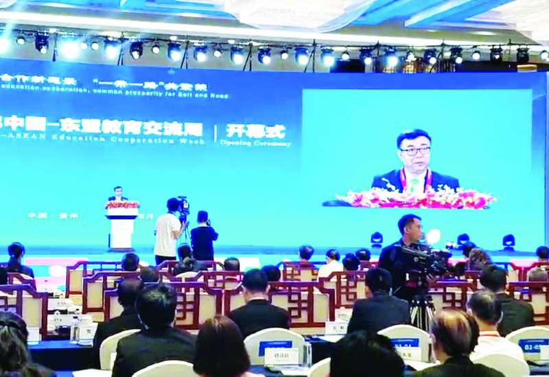ပညာရေးဝန်ကြီးဌာန ပြည်ထောင်စုဝန်ကြီး ဒေါက်တာညွန့်ဖေ ဦးဆောင်သော မြန်မာကိုယ်စားလှယ်အဖွဲ့သည် ယနေ့နံနက်ပိုင်းတွင် တရုတ်ပြည်သူ့သမ္မတနိုင်ငံ ကွေ့ကျိုးပြည်နယ် ကွေ့ရမ်မြို့ရှိ ပြည်နယ်ခန်းမ ၌ကျင်းပသည့် ၂၀၂၃ ခုနှစ်၊ တရုတ် -အာဆီယံပညာ ရေးပူးပေါင်းဆောင်ရွက်ရေး ရက်သတ္တပတ်အခမ်းအနားသို့ တက်ရောက်သည်။
