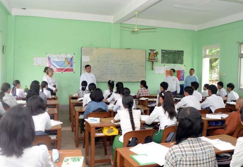 ပညာရေးဝန်ကြီးဌာန ပြည်ထောင်စုဝန်ကြီး ဒေါက်တာညွန့်ဖေသည် ဌာနဆိုင်ရာအကြီးအကဲများ၊ တာဝန်ရှိသူများနှင့်အတူ ယနေ့နံနက်ပိုင်းတွင် နေပြည်တော်ရှိ ဇမ္ဗူသီရိမြို့နယ် အမှတ်(၁၄) အခြေခံပညာအထက်တန်းကျောင်း၊ ပျဉ်းမနားမြို့နယ် အမှတ်(၃)အခြေခံပညာအထက်တန်းကျောင်းများသို့ သွားရောက်၍ သင်ကြားသင်ယူနေမှုများ၊ ကျောင်းအတွင်း သန့်ရှင်းသာယာရေးနှင့် ကျောင်းဥပဓိရုပ်ကောင်းမွန်ရေး ဆောင်ရွက်ထားမှုများ၊ ကျောင်းသား၊ ကျောင်းသူများ အေးချမ်းစွာ ပညာသင်ကြားနေမှုများကို ကြည့်ရှုအားပေးကြသည်။