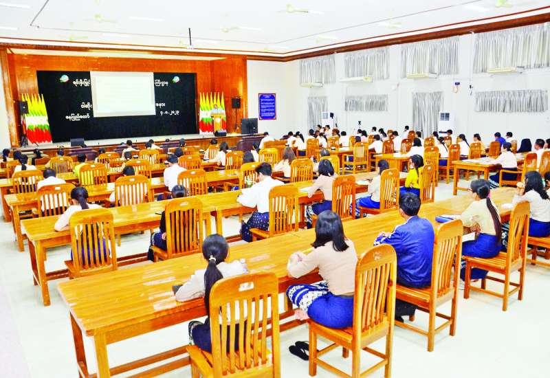 စီမံခန့်ခွဲရေးနှင့်အုပ်ချုပ်ရေးပိုင်းဆိုင်ရာလုပ်ငန်းများကို တာဝန်ယူဆောင်ရွက်ရသည့် ပညာရေးအရာရှိများအတွက် စီမံခန့်ခွဲမှုစွမ်းဆောင်ရည်မြင့်မားလာစေရန် ပညာရေးဝန်ကြီးဌာနမှ ကြီးမှူးဖွင့်လှစ်သည့် ပညာရေးစီမံအုပ်ချုပ်မှု သင်တန်းအမှတ်စဉ် (၁)ဖွင့်ပွဲအခမ်းအနားကို ယနေ့နံနက် ၉ နာရီတွင် ရန်ကုန်မြို့ မင်္ဂလာဒုံမြို့နယ်ရှိ ပညာရေး စီမံအုပ်ချုပ်မှု သင်တန်းကျောင်း ပညာရတနာခန်းမ၌ ကျင်းပသည်။