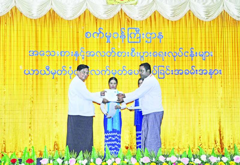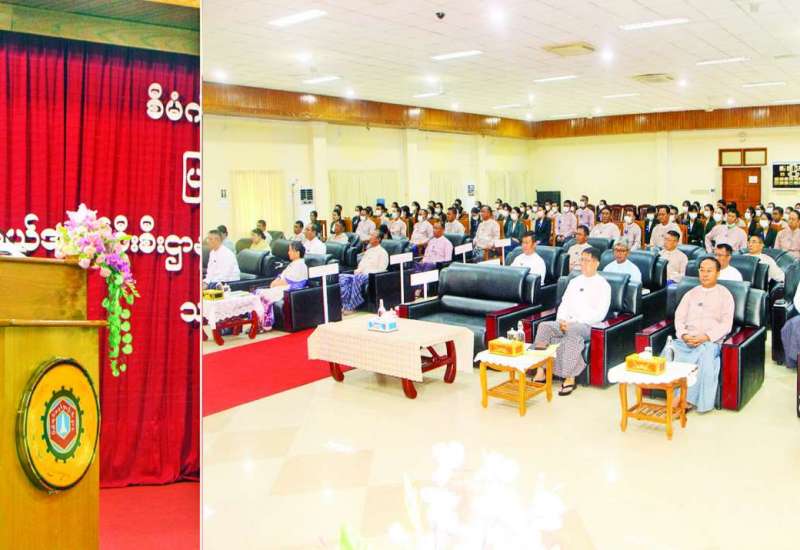 နိုင်ငံတော်အတွက် ရသင့်ရထိုက်သည့်အခွန်ငွေများ လျော့နည်းလွတ်ကင်းမှုမရှိဘဲ ဥပဒေနှင့်အညီ အပြည့်အဝကောက်ခံရရှိ နိုင်ရေးအခွန်ဝန်ထမ်းများ၏ လုပ်ငန်းစွမ်းဆောင်ရည် မြှင့်တင်ပေးရန်ရည်ရွယ်ချက်ဖြင့် ဖွင့်လှစ်ခဲ့သည့် မြို့နယ်အခွန်ဦးစီးဌာနမှူး လုပ်ငန်းကျွမ်းကျင်မှုသင်တန်း အမှတ်စဉ် (၇၉) သင်တန်းဆင်းပွဲအခမ်းအနားကို ယနေ့နံနက် ၉ နာရီက နေပြည်တော်ရှိ စီမံကိန်း နှင့် ဘဏ္ဍာရေးဝန်ကြီးဌာန ပြည်တွင်းအခွန်များဦးစီးဌာန၌ ကျင်းပသည်။