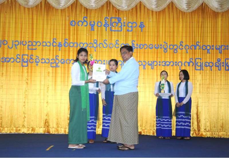 ၂၀၂၂-၂၀၂၃ ခု ပညာသင်နှစ်၊ တက္ကသိုလ်ဝင်တန်းစာမေးပွဲတွင် ထူးချွန်စွာအောင်မြင်ခဲ့ကြသည့် စက်မှုဝန်ကြီးဌာနမှ ဝန်ထမ်းများ၏ သား၊ သမီးများအား ဂုဏ်ပြုဆုချီးမြှင့်သည့်အခမ်းအနားကို ယနေ့နံနက်ပိုင်းတွင် စက်မှုဝန်ကြီးဌာန အစည်းအဝေးခန်းမ၌ ကျင်းပပြုလုပ်ရာ စက်မှုဝန်ကြီးဌာန ပြည်ထောင်စုဝန်ကြီး ဒေါက်တာချာလီသန်း တက်ရောက်၍ ဂုဏ်ပြုဆုများချီးမြှင့်ပေးအပ်သည်။