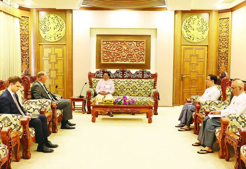 ဟိုတယ်နှင့်ခရီးသွားလာရေးဝန်ကြီးဌာန ပြည်ထောင်စုဝန်ကြီး ဦးအောင်သော်သည် ရုရှား- မြန်မာချစ်ကြည်ရေးနှင့်ပူးပေါင်းဆောင်ရွက်ရေးအသင်းမှ Vice President ဖြစ်သူ Mr. Solonetsky Vitaly နှင့် Secretariat ဖြစ်သူ Mr. Seferov Rusher ၊ Aquarius သတင်း အချက်အလက်နည်းပညာကုမ္ပဏီ၊ ရုရှားနိုင်ငံအခြေစိုက် CMR Bank နှင့် Food Line Trading ကုမ္ပဏီတို့မှ တာဝန်ရှိသူများအား ယနေ့ မွန်းလွဲပိုင်းတွင် ဝန်ကြီးဌာန နီလာခန်းမ၌ တွေ့ဆုံသည်။