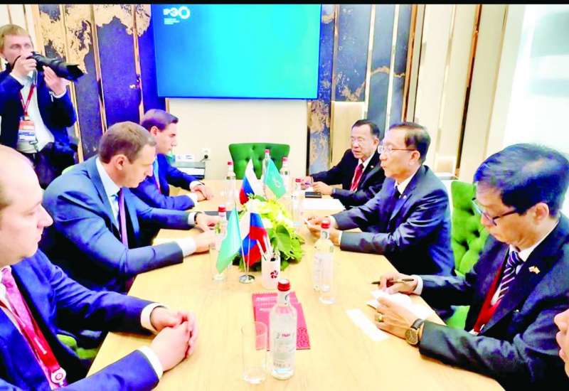 ရုရှားဖက်ဒရေးရှင်း နိုင်ငံ၌ ရောက်ရှိနေသော ဒုတိယဝန်ကြီးချုပ်နှင့် စီမံကိန်းနှင့် ဘဏ္ဍာရေး ဝန်ကြီးဌာန ပြည်ထောင်စုဝန်ကြီး ဦးဝင်းရှိန် ဦးဆောင်သည့် မြန်မာကိုယ်စားလှယ်အဖွဲ့သည် ယနေ့ တွင် ရုရှားဖက်ဒရေးရှင်းနိုင်ငံ စိန့်ပီတာစဘတ်မြို့၌ကျင်းပသည့် (၂၆) ကြိမ်မြောက် စိန့်ပီတာစဘတ် နိုင်ငံတကာစီးပွားရေးဖိုရမ် (26th St. Petersburg International Economic Forum)သို့ တက် ရောက်ကြသည်။